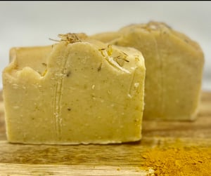 Turmeric Soap is formulated to cleanse and help remove dark spots, balance hyperpigmentation and keep skin bright , with a healthy glow,. This Turmeric Bar has anti-bacterial properties with its pure essential oils also providing a calming aromatherapy experience. The earthy botanicals throughout this natural soap lets you know its made with love and care and your skin will feel it.